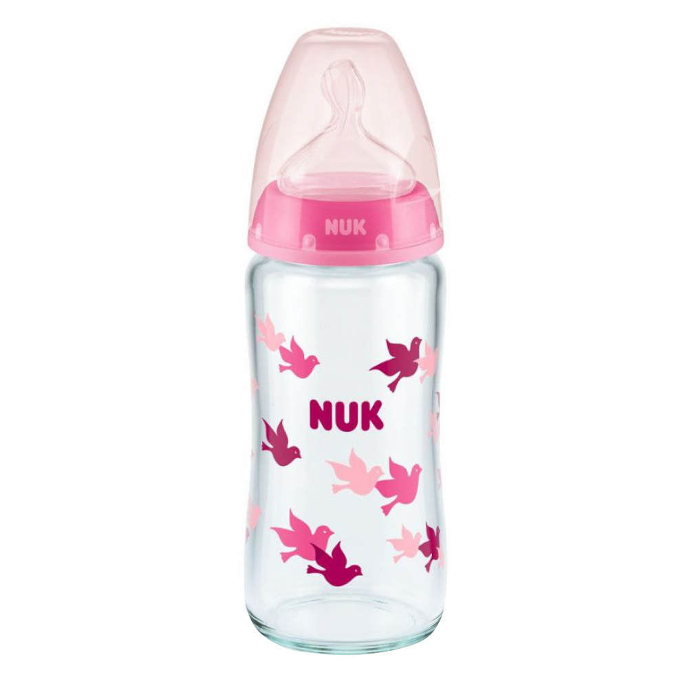 Caracteristici Biberon Nuk First Choice Sticla 240 ml Control Temperatura Tetina Silicon M 0-6 luni Roz: