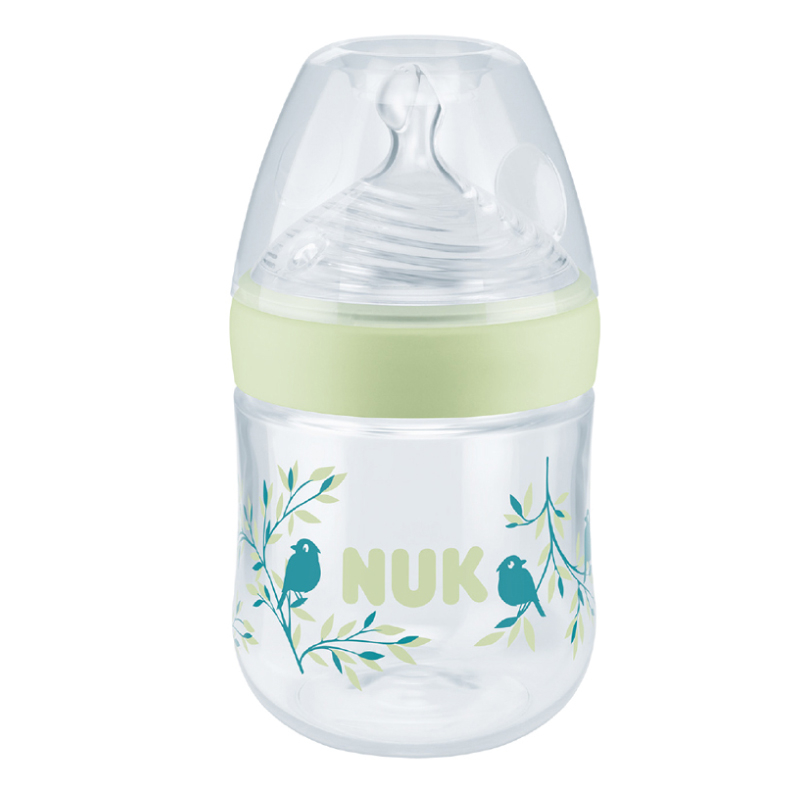 Biberon Nuk Nature Sense PP 150 ml Control Temperatura Tetina Silicon S 0-6 luni Verde – pentru hranire sigura si relaxata.