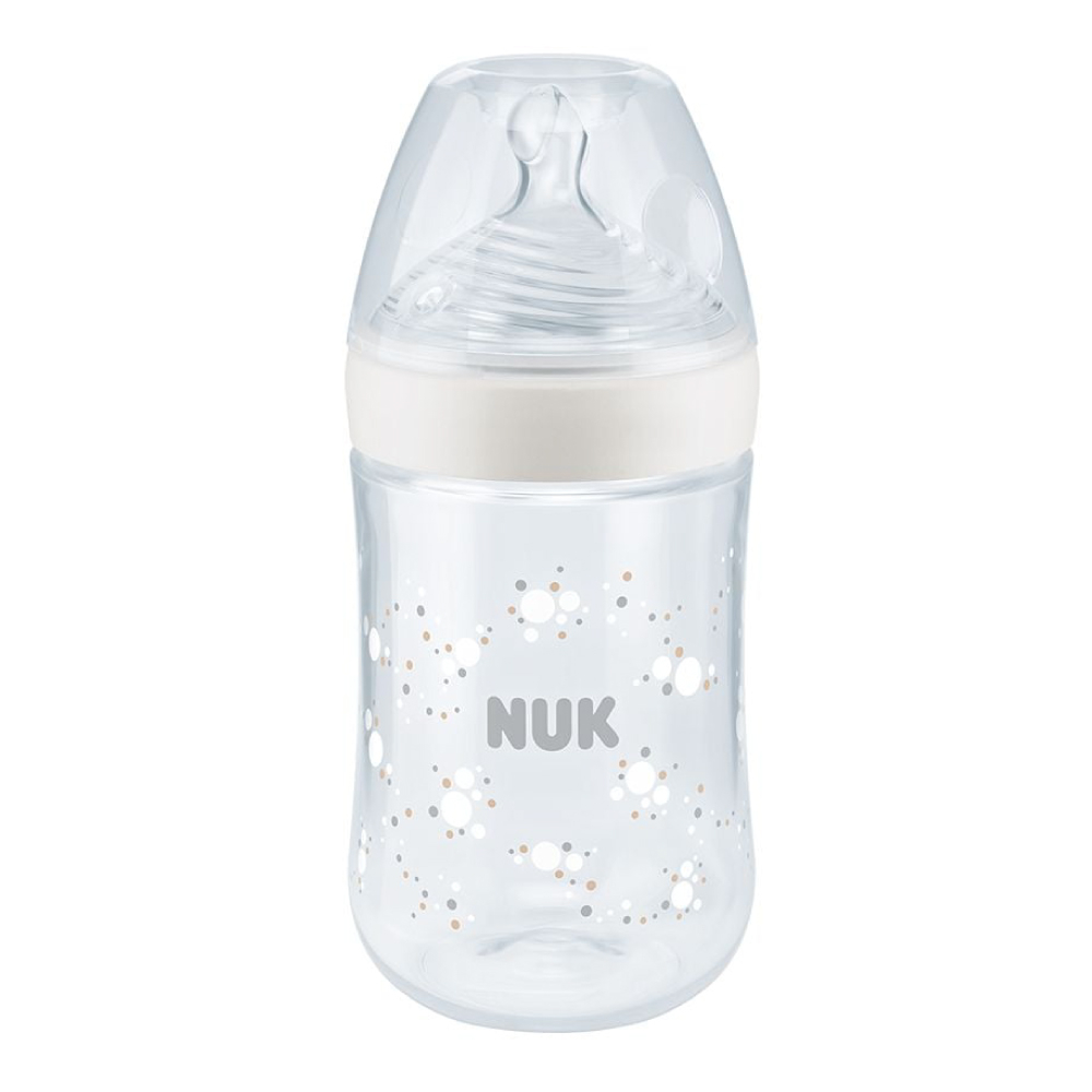 Biberon Nuk Nature Sense PP 260 ml Control Temperatura Tetina Silicon M 6-18 luni Alb – pentru hranire sigura si relaxata.