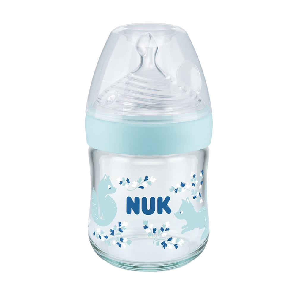 Caracteristici Biberon Nuk Nature Sense Sticla 120 ml Control Temperatura Tetina Silicon S 0-6 luni Turcoaz: