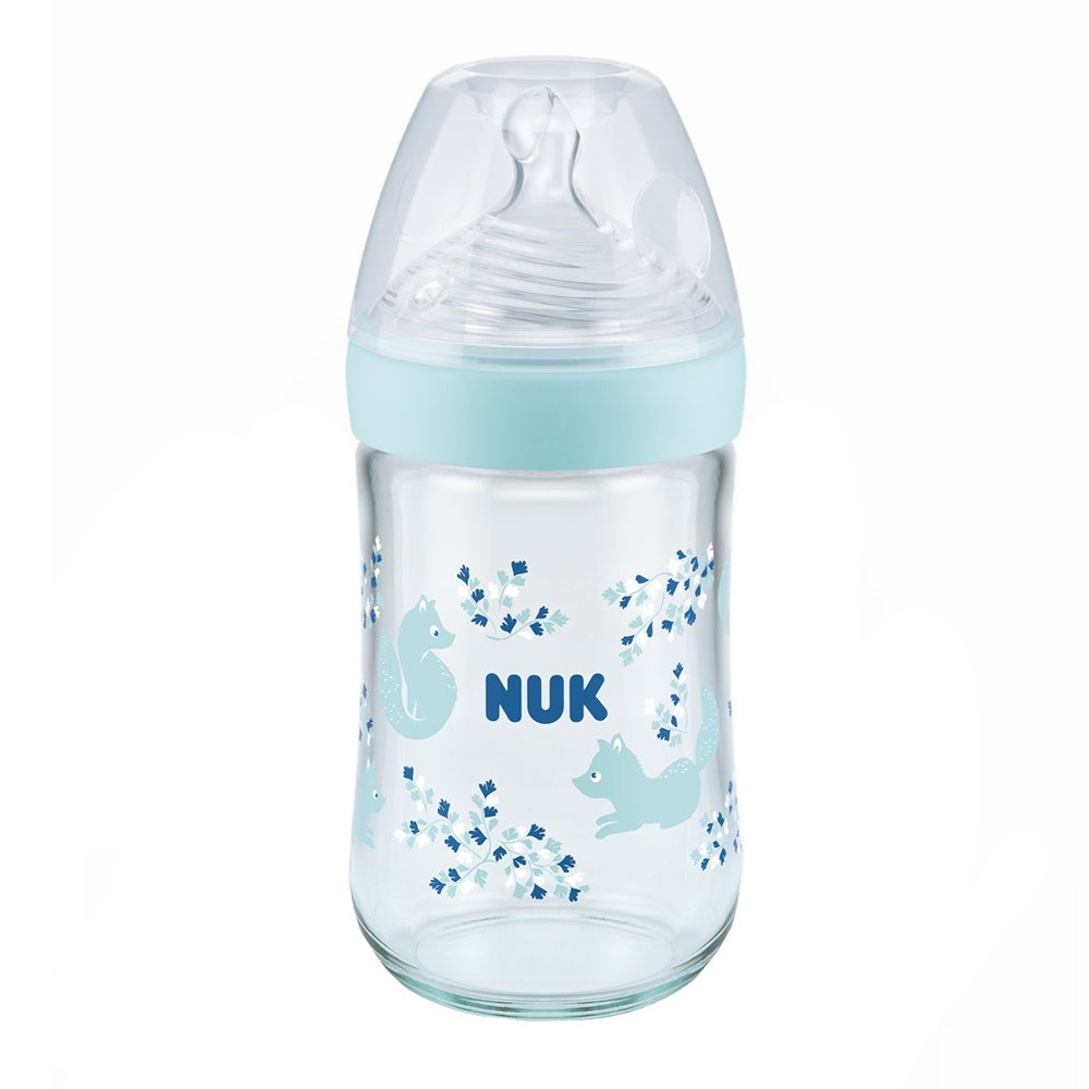 Caracteristici Biberon Nuk Nature Sense Sticla 240 ml Control Temperatura Tetina Silicon M 6-18 luni Turcoaz: