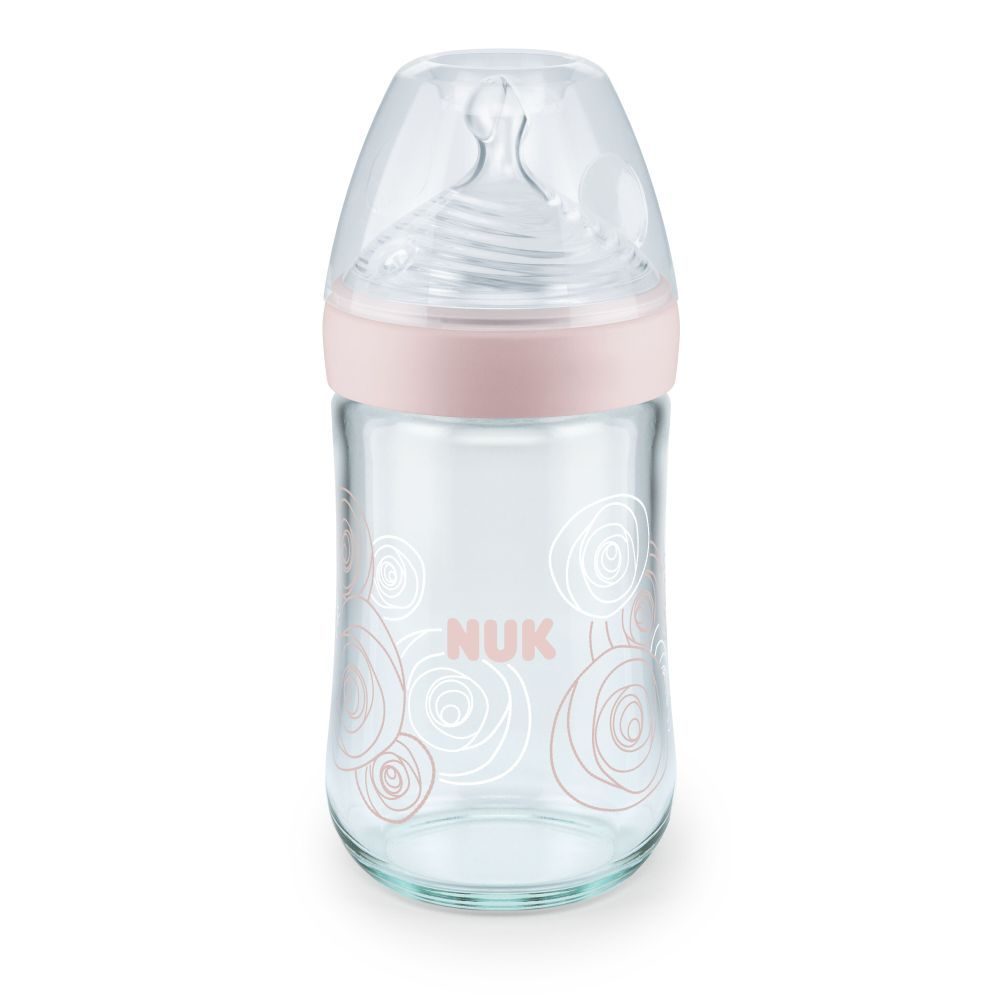Biberon Nuk Nature Sense Sticla 240 Ml Tetina Silicon Orificiu M 0-6 luni Roz: