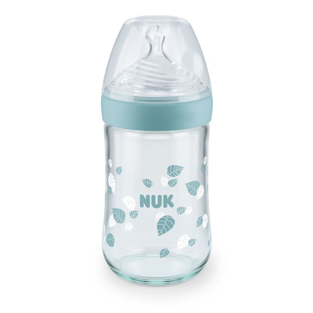 Biberon Nuk Nature Sense Sticla 240 Ml Tetina Silicon Orificiu M 0-6 luni Vernil: