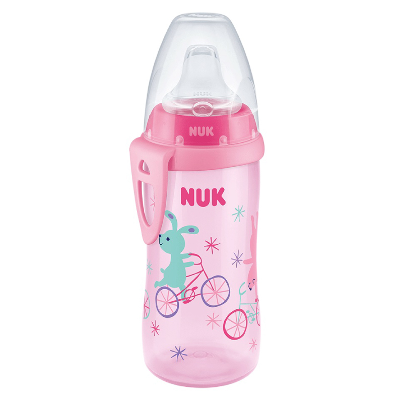 Caracteristici Cana Nuk Active 300 ml cu adaptor silicon de la 12 luni Roz: