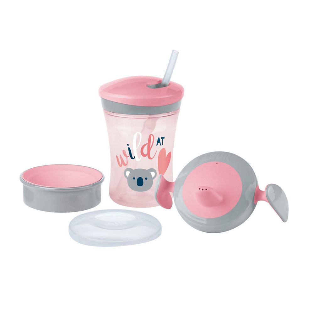 Cana Nuk Action Top a fost dezvoltată copiilor activi, cu vârste de peste 12 luni. Prezintă un accesoriu în formă de pai, care dispare imediat în capac când acesta este înșurubat.