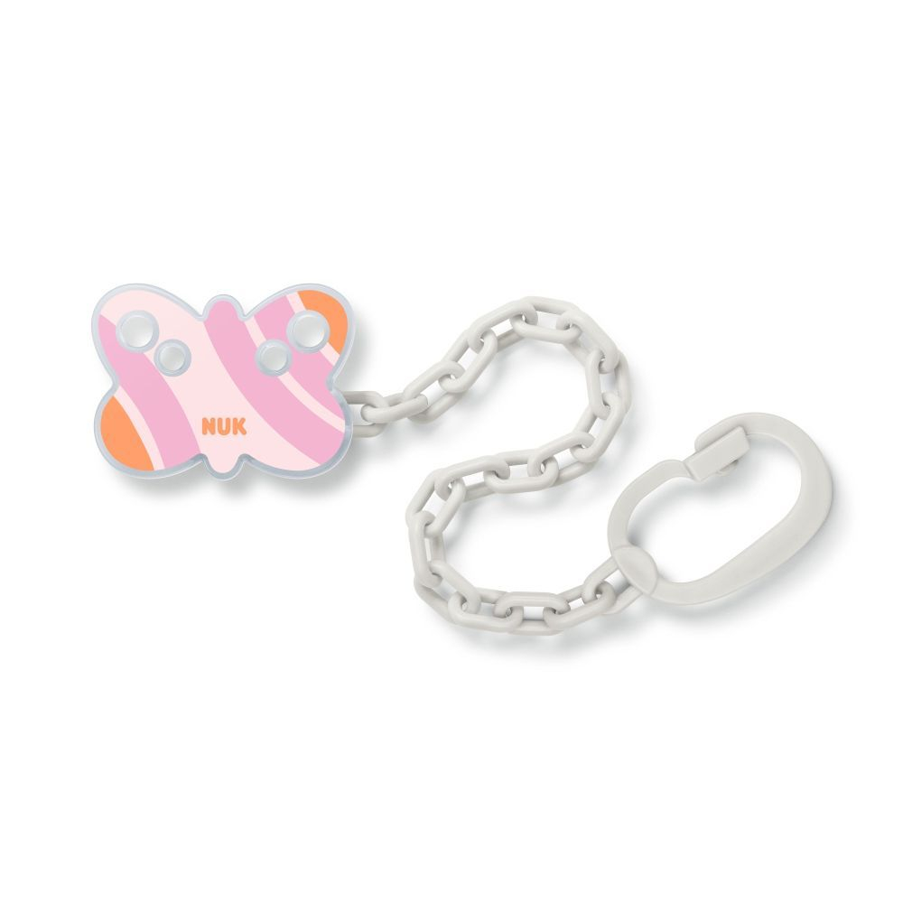 Suzetele sunt tare năstrușnice: cad pe jos, se rătăcesc sau se ascund atât de bine încât nu le mai poți găsi. Pentru a le păstra la locul lor, NUK a dezvoltat Lant Suzeta Nuk Fluture cu clips practic de prindere.