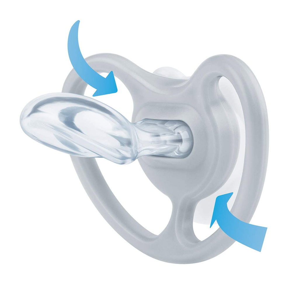 - Gatul subtire si ingust al tetinei reduce presiunea asupra dintilor si maxilarului.