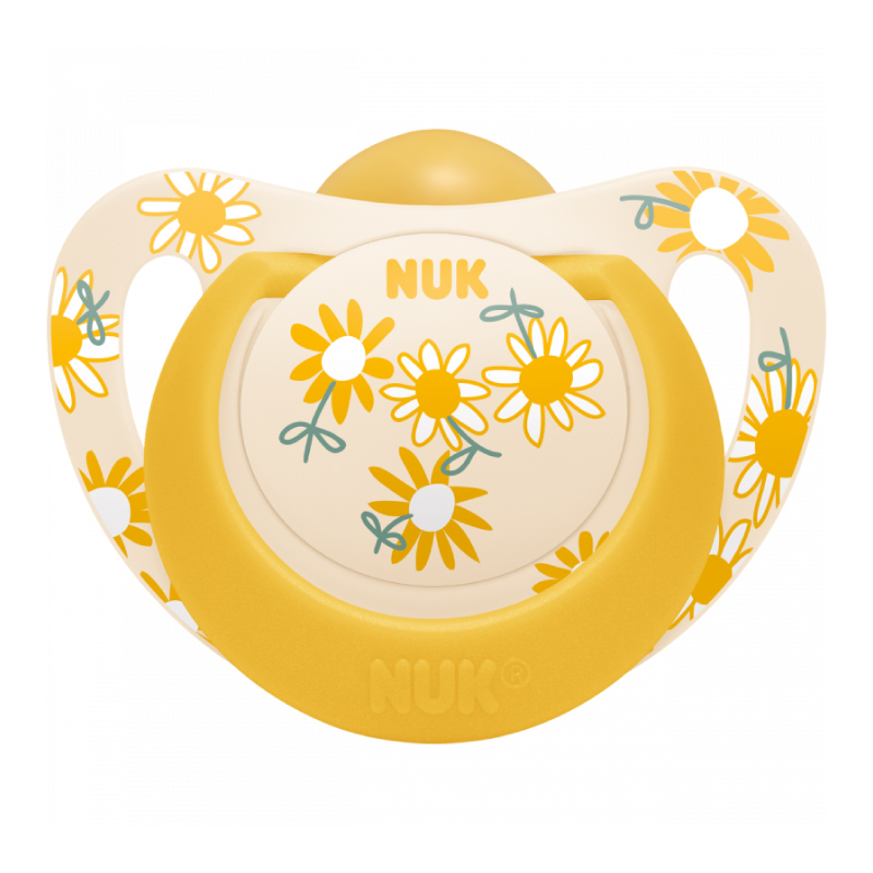 Suzeta Suzeta Nuk Star Latex 18-36 luni Galben – cu tetina moale, fabricata din cauciuc natural pur.