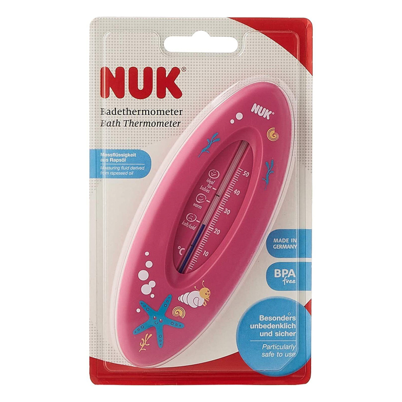 Termometrul pentru baie NUK asigura distractia la baita. Este umplut cu un ulei natural, complet inofensiv si sigur pentru masurarea temperaturii apei. De indata ce termometrul confirma ca temperatura apei este cea potrivita, distractia poate incepe.