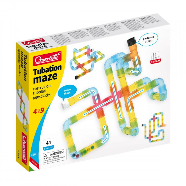 Noul joc de constructie Tubation Maze Quercetti ii va cucerii pe copii. Piesele tubulare se imbina cu usurinta in nenumarate moduri, iar constructiile realizate se transforma intr-un labirint de trasee.