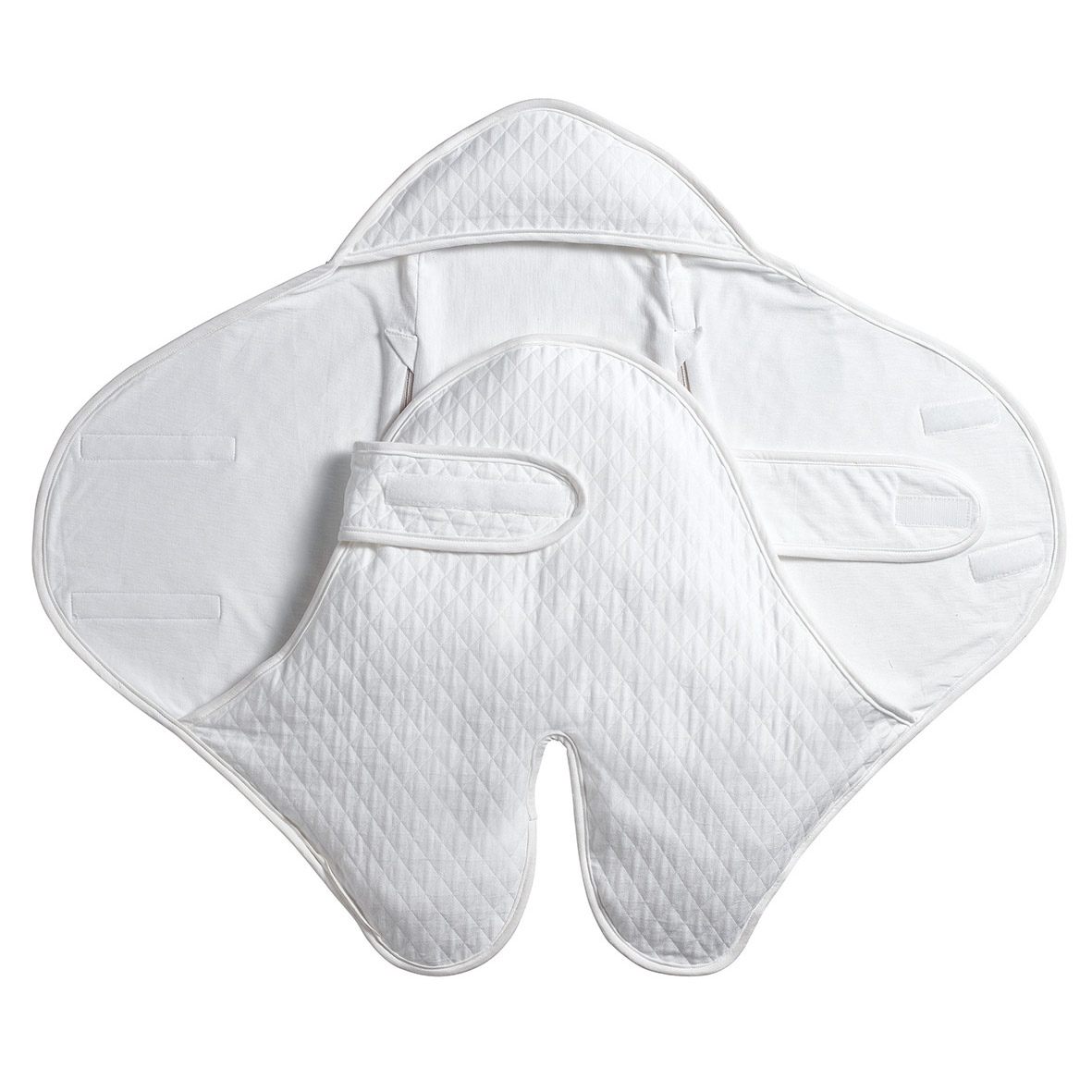 Avantaje tehnice: paturica Babynomade® este astfel croita incat sa poata fi trecute usor prin ea centurile caruciorului sau scaunului auto, pentru ca bebelusul sa fie bine invelit si in cazul in care sta in cosul auto sau in carucior.