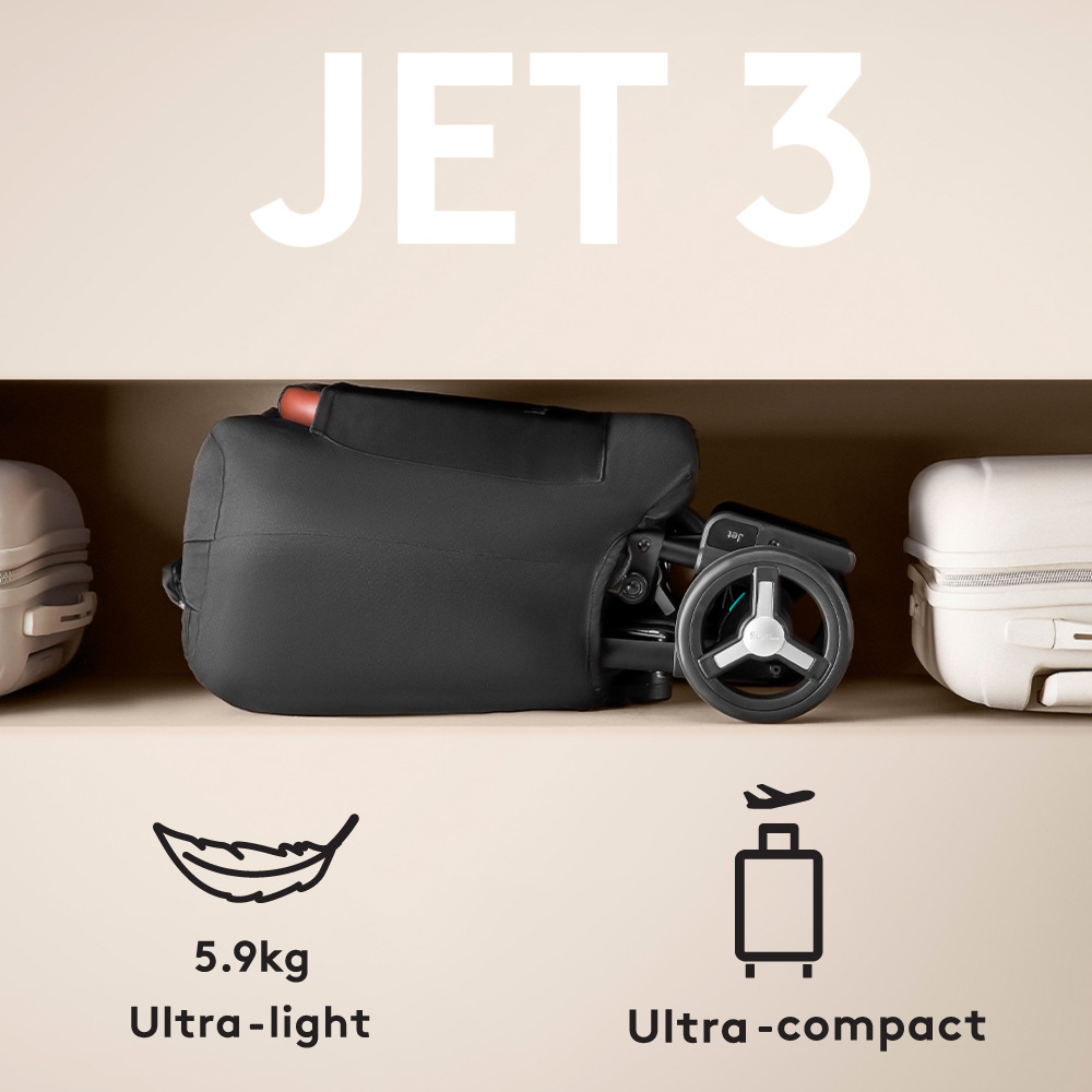 Silver Cross Jet 3 se potriveste perfect in portbagajul masinii si in spatiile de depozitare de deasupra capului. Este aprobat ca bagaj de cabina de majoritatea companiilor aeriene si poate fi tras ca un troler in modul pliat, oferindu-va confort maxim in calatoriile voastre.