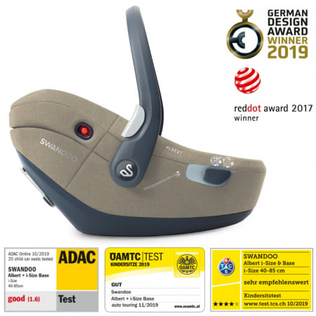 Scoica auto Swandoo Albert i-Size 1.2 Alfalfa este evaluata ca cea mai sigura scoica auto pentru bebelusi de catre Automobil Club German ADAC si OAMTC in toamna anului 2019.
